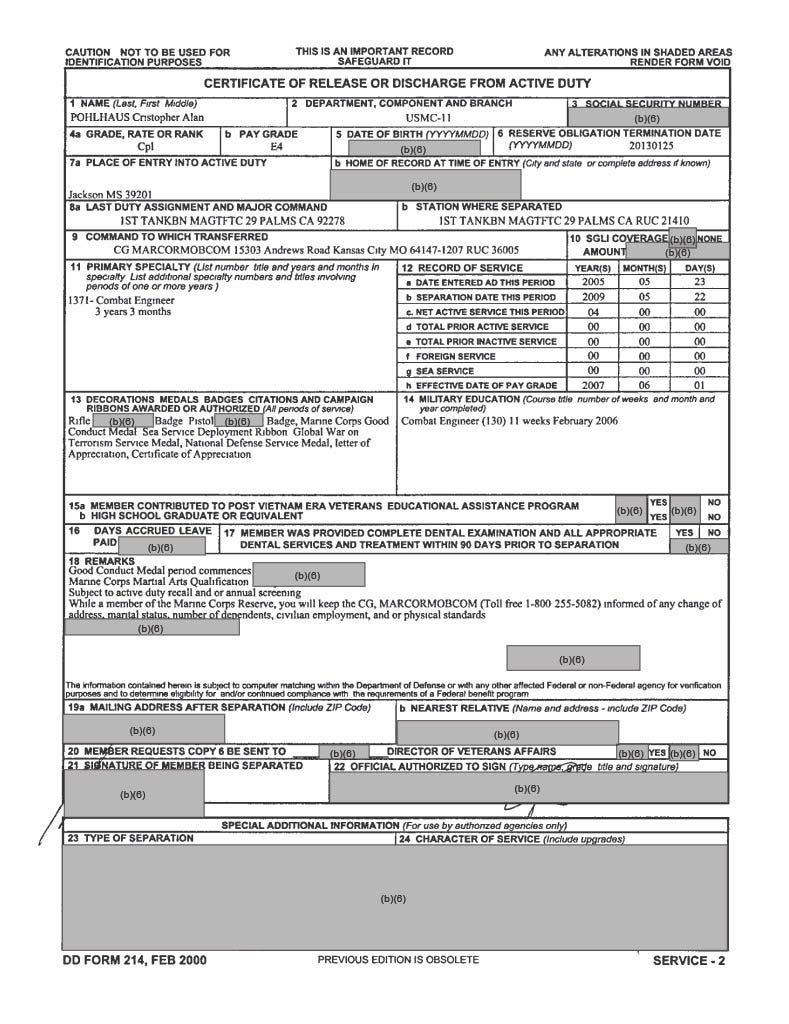 Today I am publishing the military discharge papers of American neo-Nazi Christopher Alan Polhaus, who leads the particularly embarrassing extremist group “Blood Tribe.” You may view or download below.