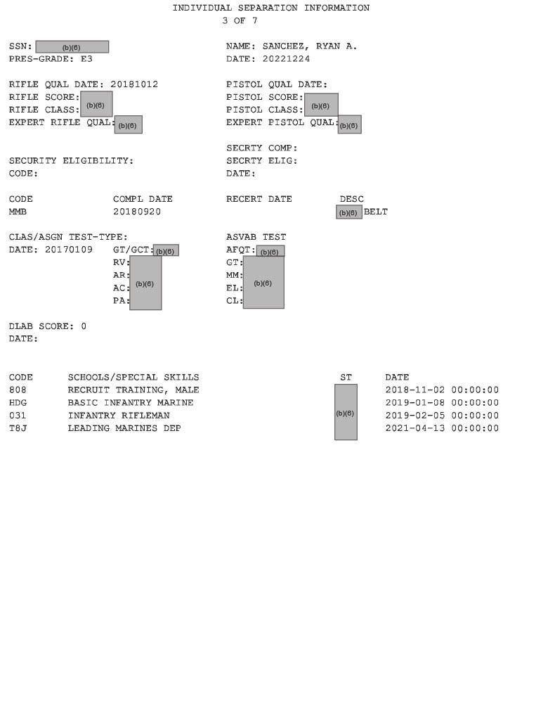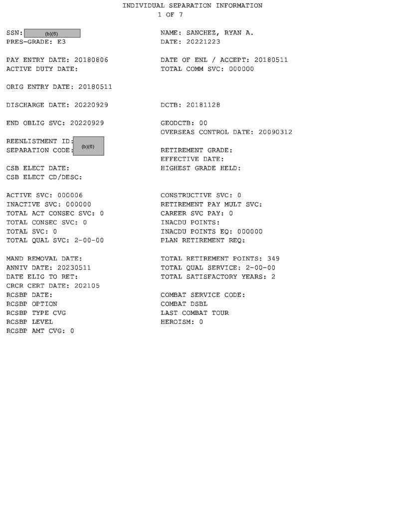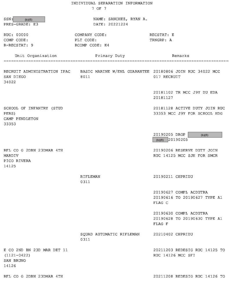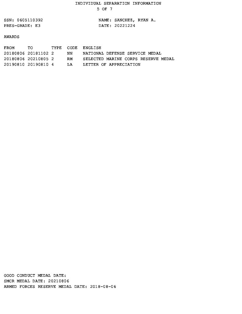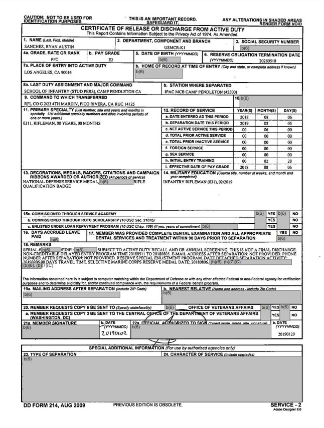 Following their initial publication, Sanchez reached out to me, stating that some of the records may have been missing. He said, “For context, reservists receive a DD214 when they complete boot camp and MOS school, before they report to their unit.”