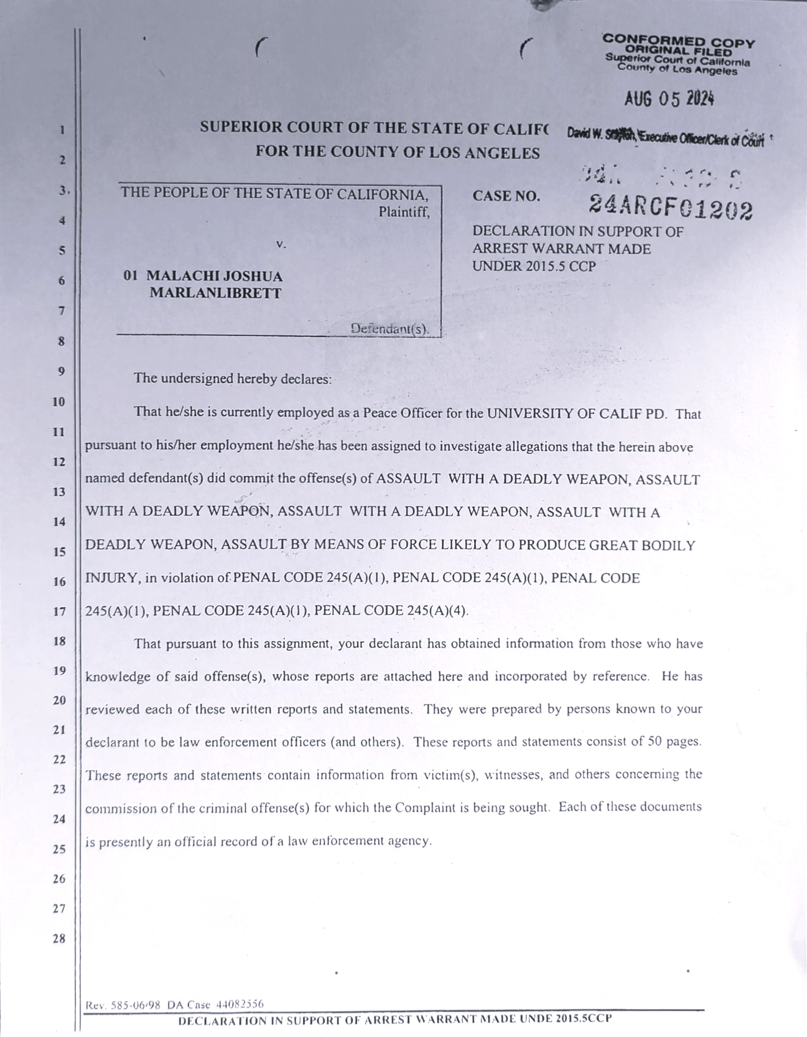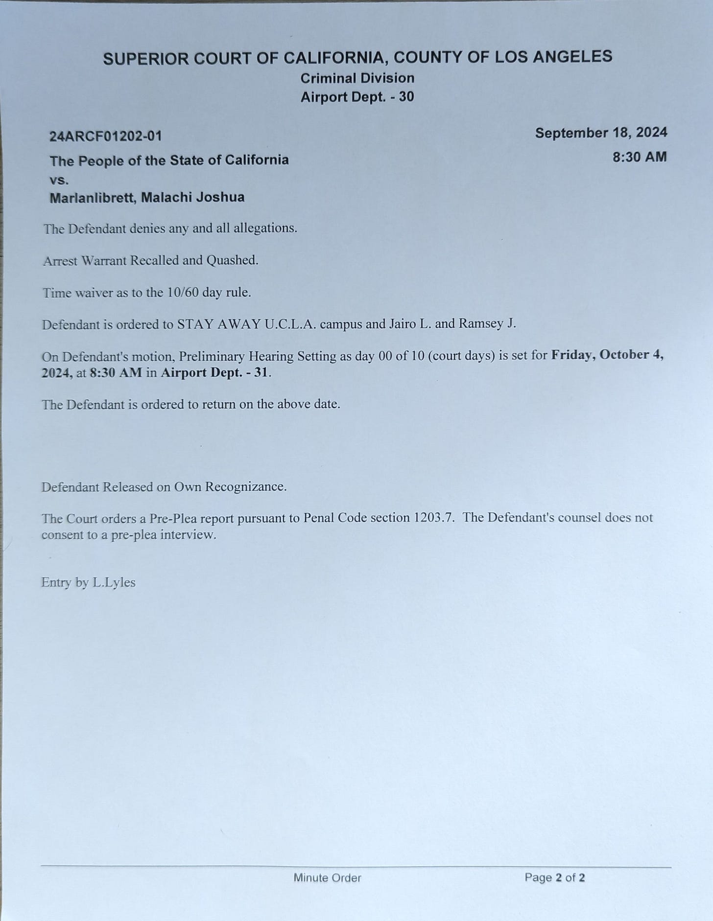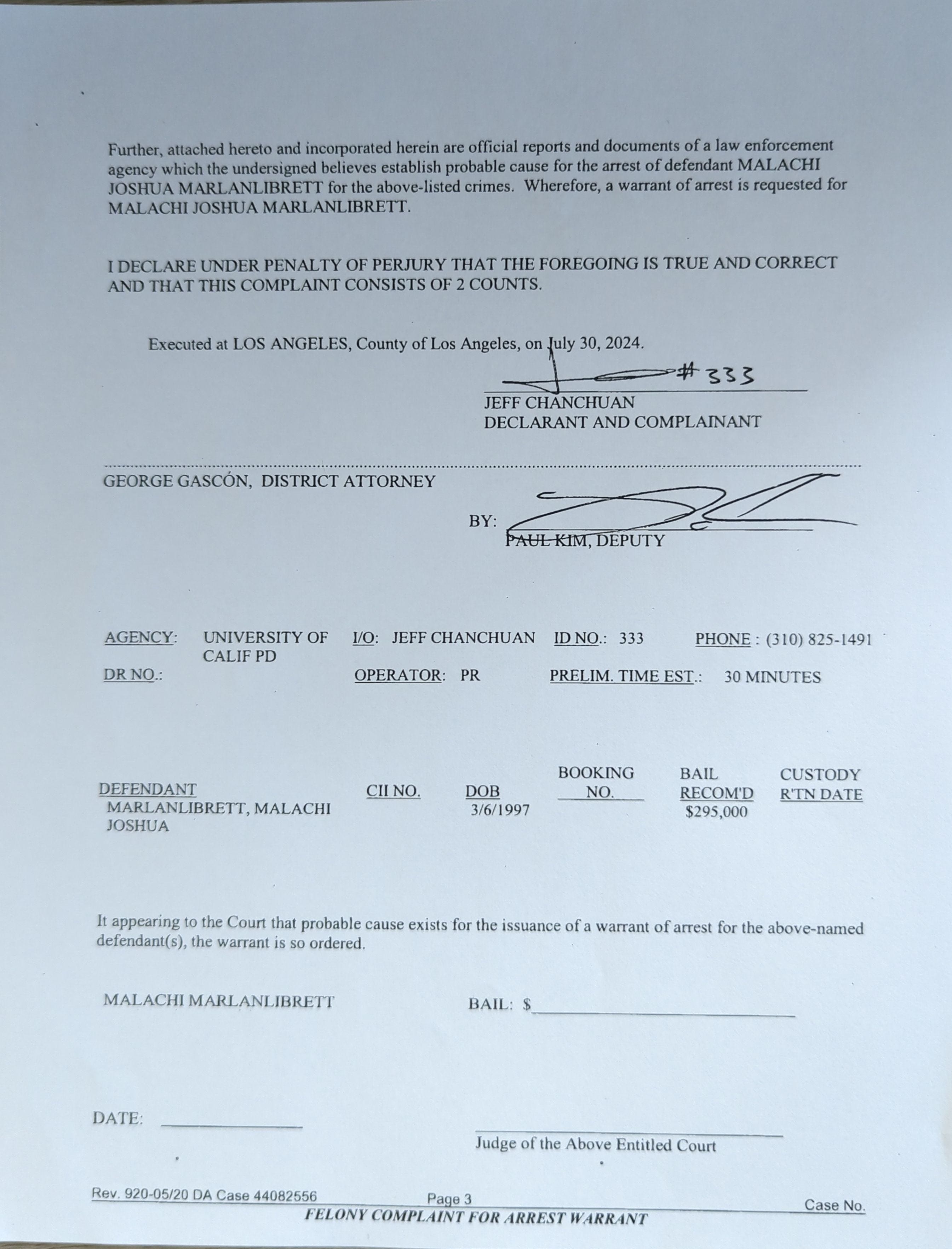 Malachi Joshua Marlan-Librett: The UCLA Files.Eric LevaiNov 24, 202431ShareToday I am publishing court records for Malachi Marlan-Librett, which will be updated as more information emerges.Written By Eric Levai is a reader-supported publication. To receive new posts and support my work, consider becoming a free or paid subscriber.Subscribe