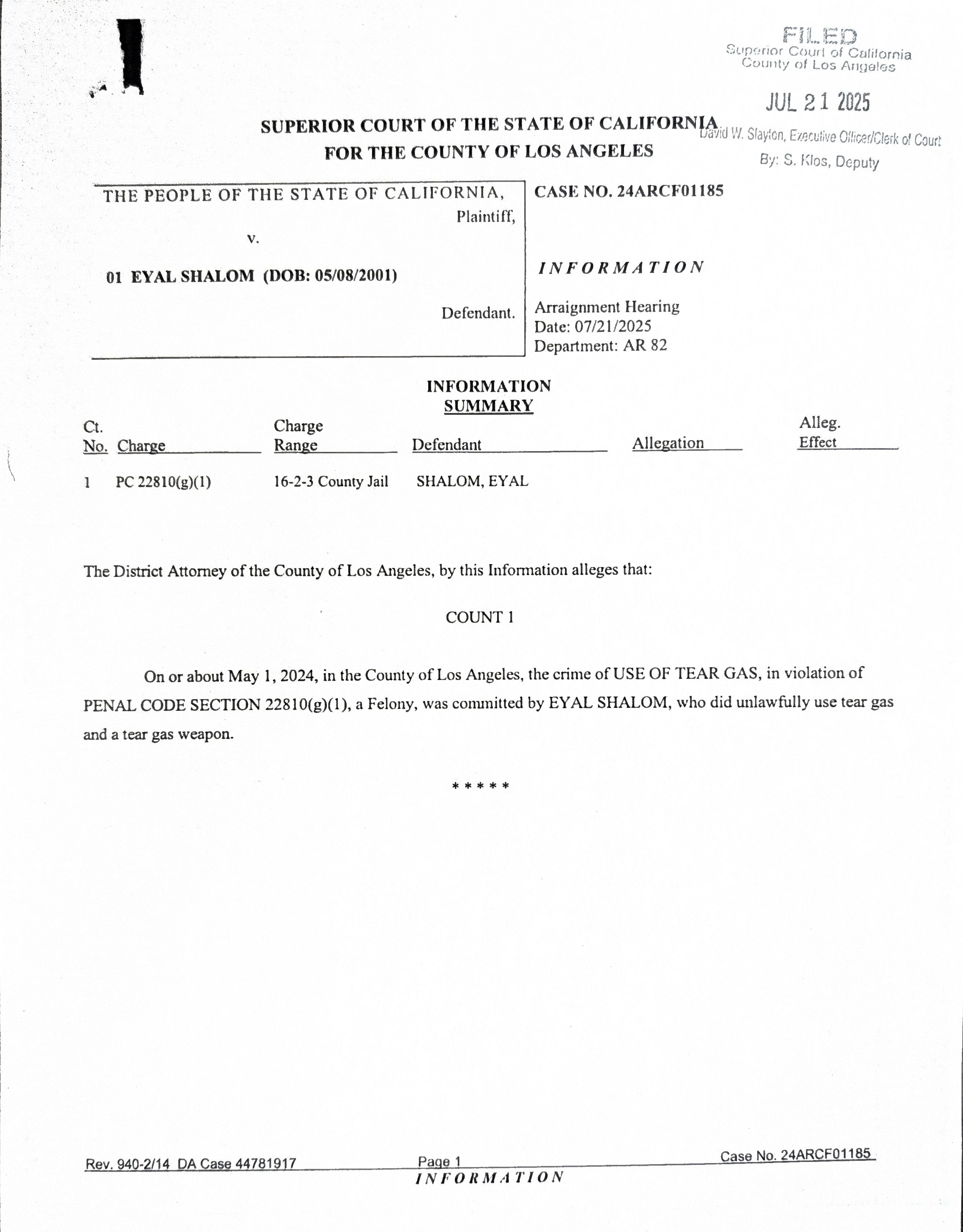 UCLA Attacker Eyal Shalom: Case File.Eric LevaiNov 24, 20242ShareToday I am publishing court records for Eyal Shalom, which will be updated as more information emerges.